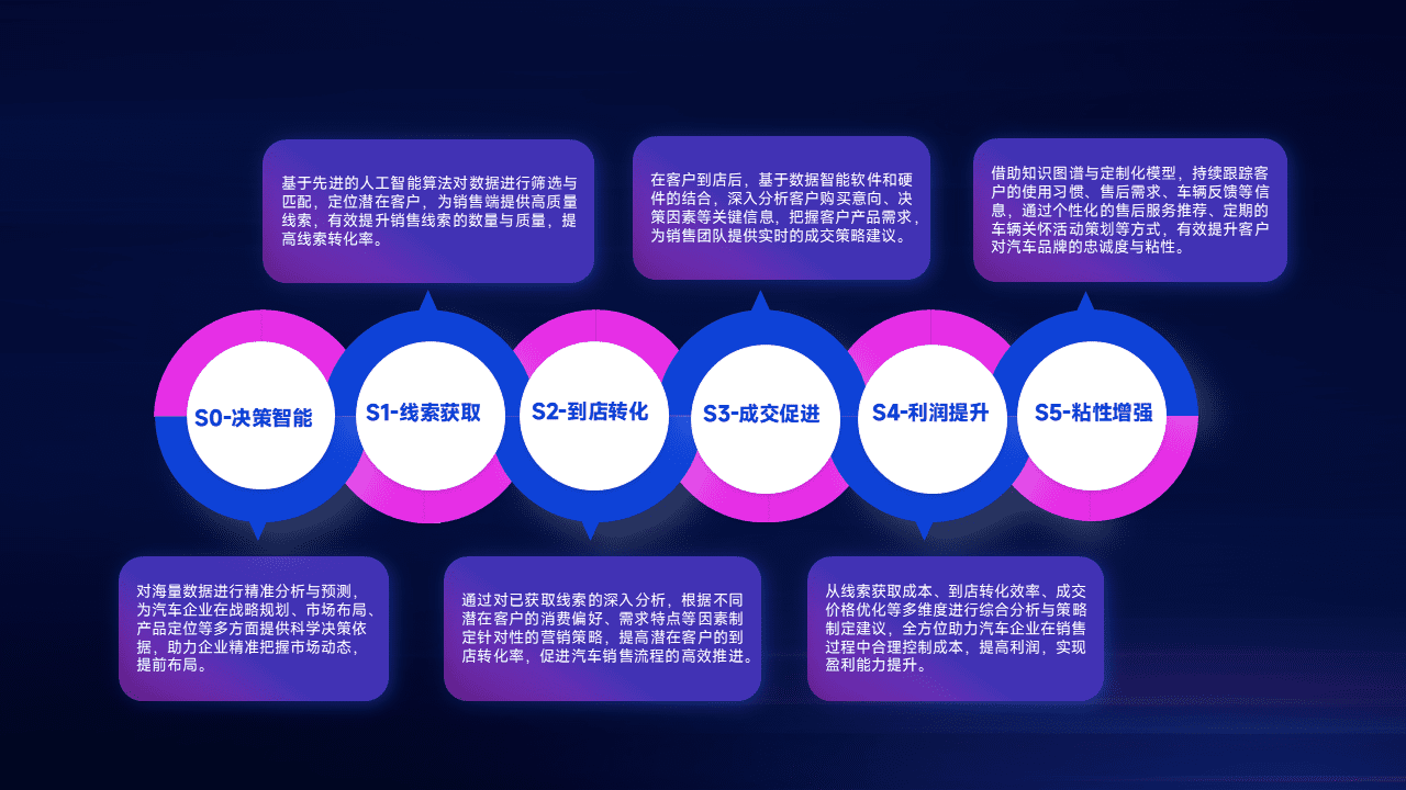 通过拓宽潜在客户来源、、优化线索分配并提高到店转化率,,,,以增强销售效率。。。。同时,,,利用线索数据不断优化分析模型,,有效提升转化率,,,扩大营销影响力。。。